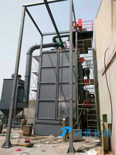本機任務時,當籌辦任務(除塵體系、分手器晉升機、螺旋保送器等運轉)終了后,機器起頭一般任務。起首,電動葫蘆在室體外裝上工件后吊起,將工件開進清算室,當達到拋丸工位時,大門起頭封閉,工件起頭自轉,此時翻開拋丸器,開供丸閘,起頭對工件停止拋丸清算,清算一段時候后,封閉供丸閘門,封閉拋丸器,封閉除塵體系,翻開大門,工件吊出室體卸件。反復上述進程直至任務終了,按挨次停機。